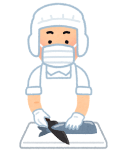 スーパーでも精肉や鮮魚、総菜コーナーのガラス越しに白い服を着て仕事をしている人がいますよね。