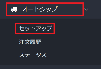 では、設定方法ですがログインをして左側の「オートシップ」から「セットアップ」をクリック