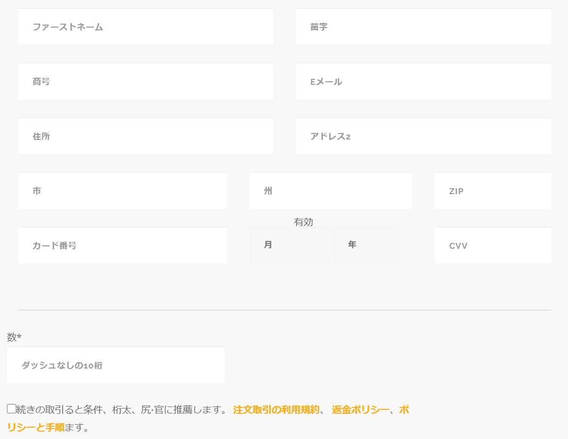 以降は決済の情報やお届け先の情報を入力して注文完了です。