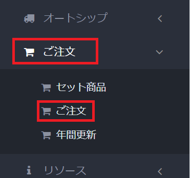 中には「セット商品」「注文」「年間更新」の中から「ご注文」をクリック