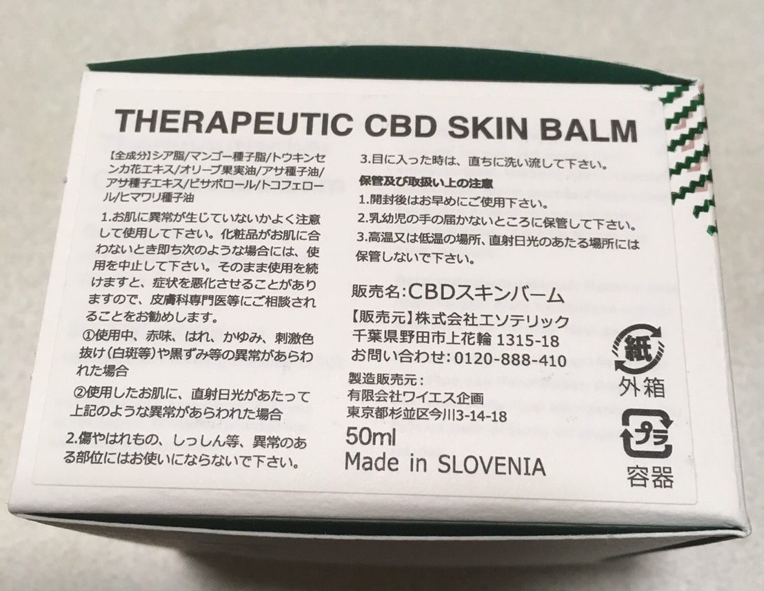 一度に沢山勝って試すのも躊躇されるので、とりあえず評価が良くて高いCBDスキンバームを購入し実際に5か月ほど使ってみましたんです。