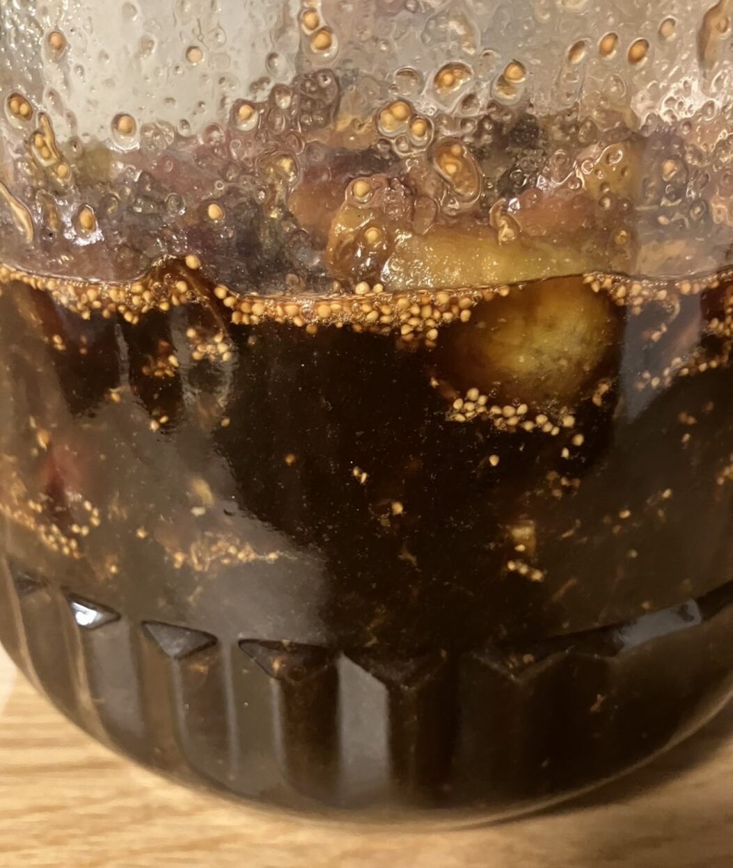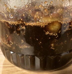 出来上がったイチジク酵素シロップは、お水や炭酸水で割ると美味しく飲めます。