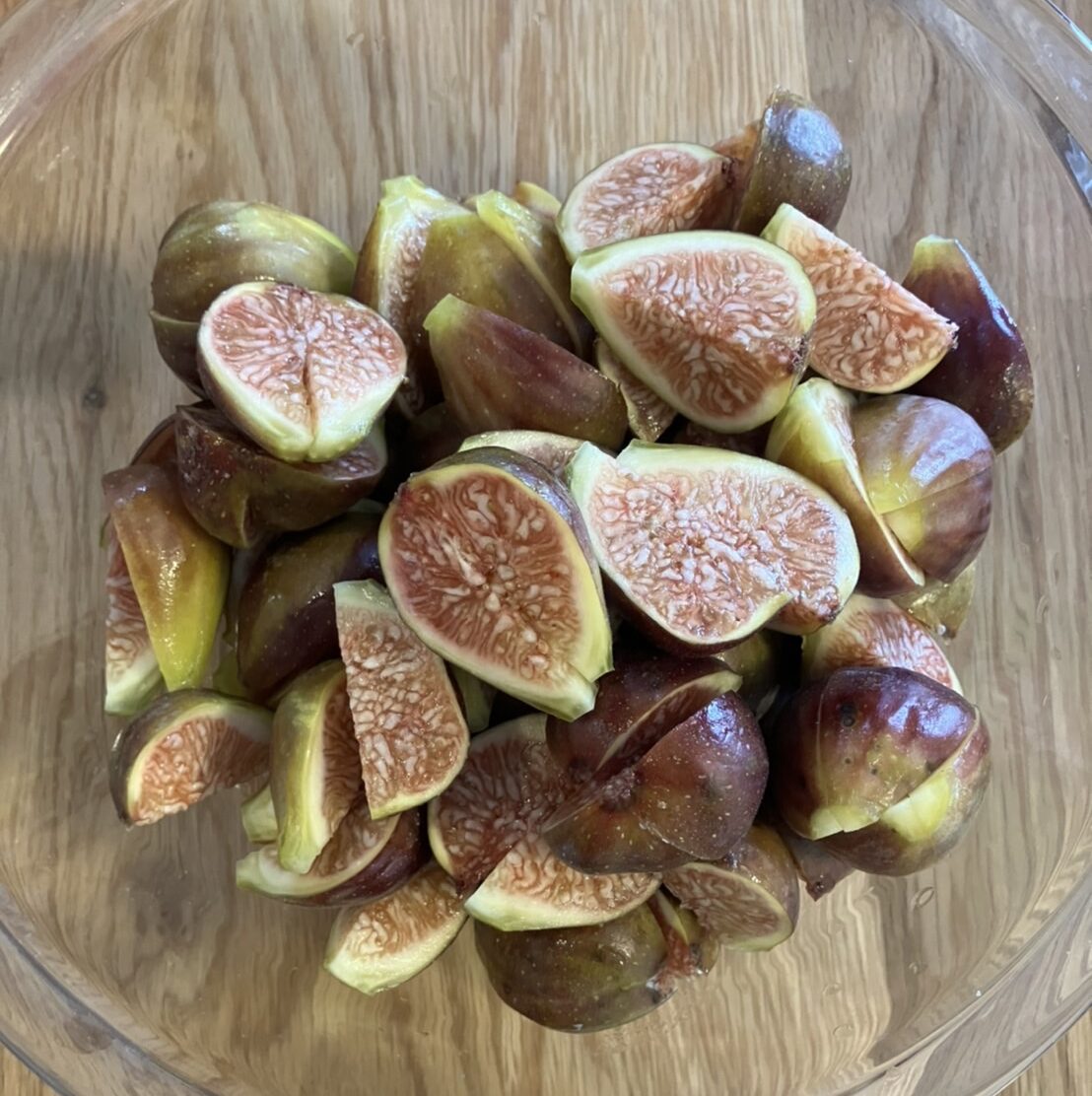 通常の大きさのイチジクなら縦半分にカットして、3等分すればOKです。