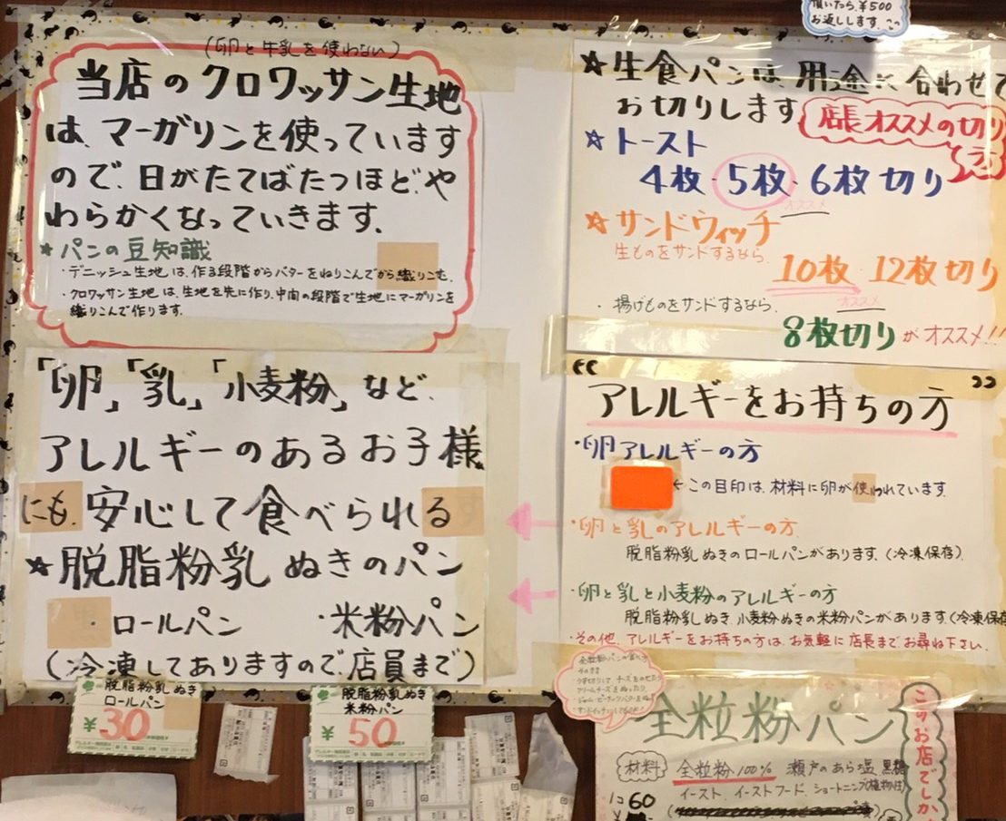 こちらのパン屋さんは、「小麦・卵・牛乳アレルギー」の人でも食べれるパンがあります。