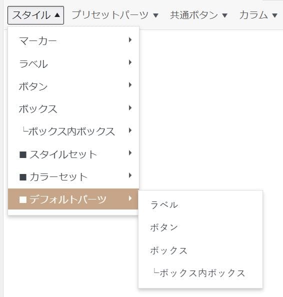 設定には「スタイル」の「デフォルトパーツ」から3つのパーツを選ぶ必要があります。